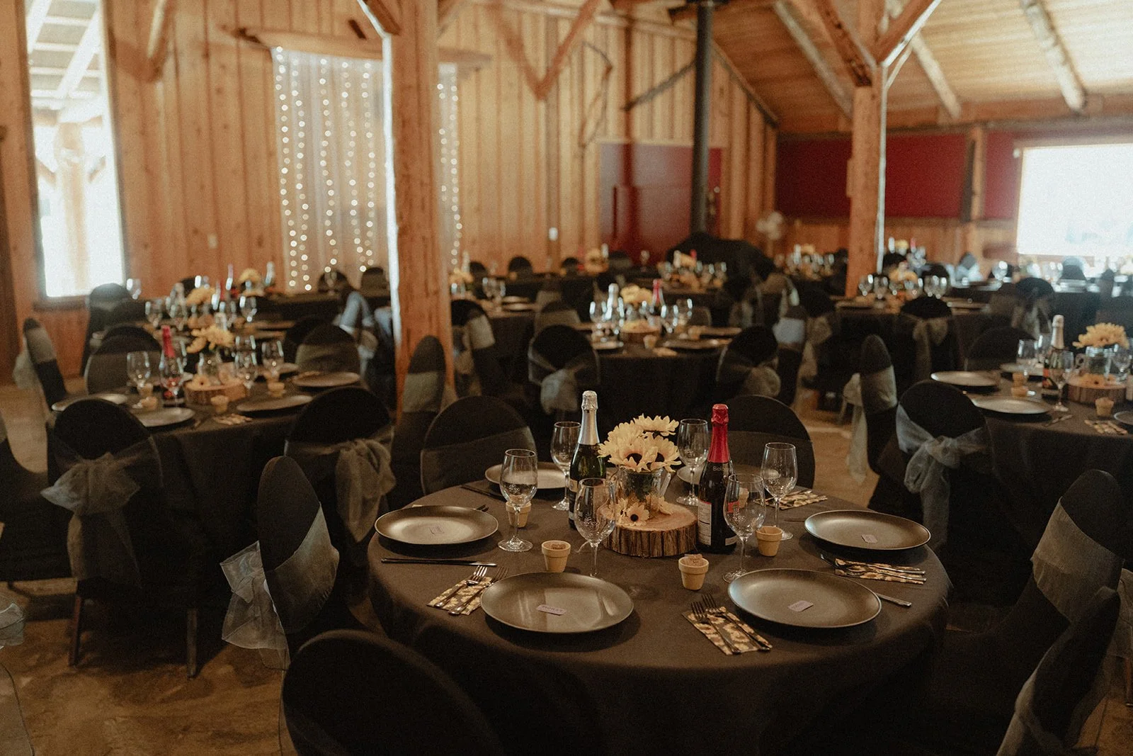 The log post & beam lodge style barn offers a spacious 6000 square feet of indoor space in addition to extensive outdoor areas. The property, with it’s natural lawns & lush trees provides a beautiful setting for romantic outdoor ceremonies & offers a great backdrop for wedding photographs.